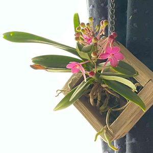 昨日ホームセンターで花の終わったバンダ プチブーケが1400円→550円になってたので思わず購入😅 でも、3年前から育ててるミニバンダ のヨネザワラ ブルースターは毎年花芽を出すけど咲かずに枯れるっていう咲く咲くサギの常習犯💦 プチブーケも同じかなぁ 冬の湿度不足が原因かな〜と思いブルースターを3月から水栽培にしたら脇芽や新根が出て調子良さそうなのでプチブーケも同じく水栽培してみようと思います🤗 どちらも咲いてくれるといいな💕