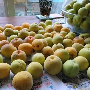 雨がパラパラ降ってきました。 よかった、降る前に収穫完了です。ずっと時期を伺ってました。 さて、何を作ろうか。 やはり今年は梅干しだな☺