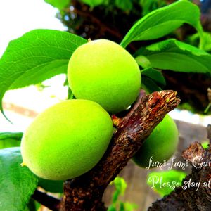 雨上がりの午後 梅の実を 収穫しました まだ木の上の方には 青々とした実が… 今年も梅シロップ 梅ピクルス 梅干し…… 梅仕事が楽しみです♬♬