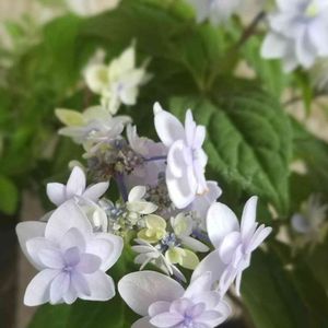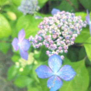 山あじさい 小さな青と白の花色で 淡くきれいに咲きだしてきました❤