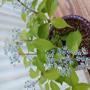山アジサイ“藍姫”がやって来ました:-) 数年前に盆栽用に売られていた小さな苗を見て欲しいながらも悩んで諦め、結局忘れられずにいた品種です。 安価で大きめの良株が入手出来て大満足♪