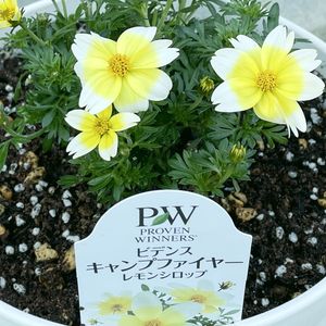 PWのビデンス、キャンプファイヤーです。 カラーはレモンシロップ。 爽やかなレモン色です。 PWらしく、もりもりに育ちます。