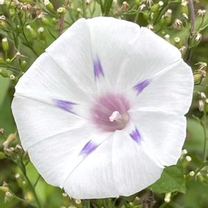 線路脇や空き地のフェンスに絡まって、あちこちで見かけます。色は白ばかりです❗️ AIがヒロハヒルガオと教えてくれました。