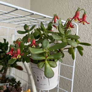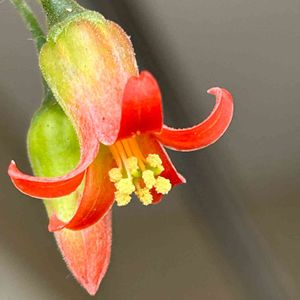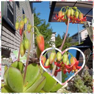 コチレドン属ゴルビュー🌱 まだ小さい子ですが赤い可愛いお花が咲きました❣️ これが皆が言うタコさんウインナーね!✨🐙✨ なるほどね~😊💓 我が家の多肉🌱このお花の形は初めてです🐙✨🧡