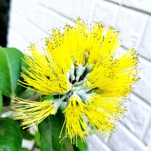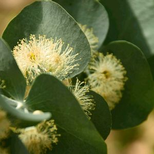 ユーカリの花🌼 フトモモ科 オーストラリア原産 常緑高木 花は4月~5月または 9月~10月 成長が早く、山火事でも耐えられるほどの強い生命力を持っている 種類も多い ※ユーカリの花の実物を初めて見ました 10月28日に行ったフローラルガーデンおぶせの温室にて