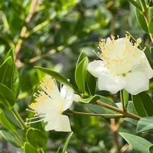 【銀梅花】《フトモモ科》 花言葉 「愛」「愛のささやき」「高貴な美しさ」 別名 ギンコウボク(銀香木) ギンコウバイ(銀香梅) 「高貴な美しさ」という花言葉は、 ギリシャ神話で 美の女神アフロディーテの美しさを讃えてギンバイカが捧げられたという神話に由来しています。 また 「愛」「愛のささやき」という花言葉は、ギンバイカの美しさから 西洋では結婚式の装飾やブーケに よく用いられることに 由来しています。