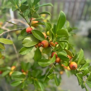 🌳我が家の🇫🇷フランス式庭園 御神木のギンバイカ 秋に咲いてくれてありがとう。 来年の初夏にたくさんの咲き花で逢いましょう。 3︎⃣ ギンバイカの実 ほんの一部です。 収穫すれば マートル酒で飲めます🍷。