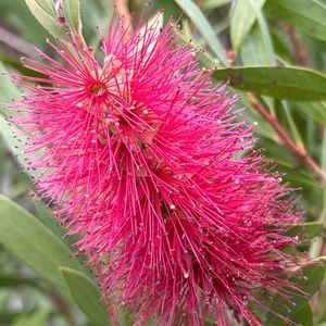❤️ブラシノキ 11月にブラシノキの花が咲いていました。通常の花期は5月〜6月ですが、四季咲きの品種は秋にも咲くようです。 ⚫︎フトモモ科 ブラシノキ属 ⚫︎原産 オーストラリア ⚫︎花期 5月〜6月