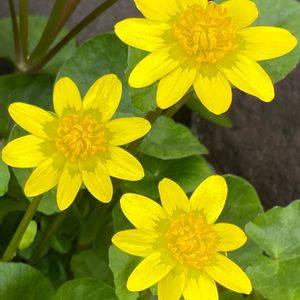 北庭でひっそり咲いている ヒメリュウキンカ 春を感じた放置の鉢植え💛ツヤツヤノハナ✨ 🏷放ったらかし隊