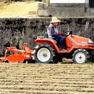 春が来たから、 オレンジ色🧡のトラクター🚜で 農作業開始しました。