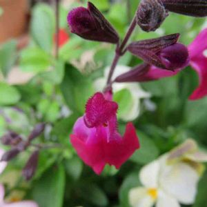 チェリーセージ・パープルローズ 寄せ植えのものが咲き始めました💠 葉っぱはスパイシーな香りがします🍃