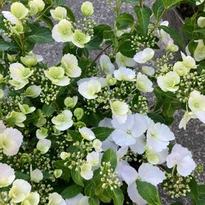 ガクアジサイ“恋路ヶ浜” 蕾がたくさん見えてきました🤍💙 福岡生まれなので心配してましたが 北海道の寒い冬でも 戸外越冬してくれました💙🤍 (恋路ヶ浜が福岡原産ってことではなく、福岡の花友さんが挿し木してくれた子なので“福岡生まれ”と記しました🙏💦) 斑入りの葉っぱ 装飾花が白 中心部の両性花が…本来はブルー でも昨年はピンクっぽかった😁 今年は青いアジサイ用の土と肥料を使ったのでブルーが咲くのを期待してるけど… 果たして…… どっちにしても楽しみでワックワク🥰
