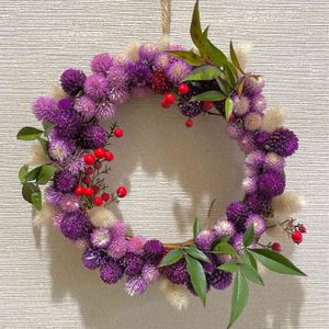 千日紅のリース👩🌾 去年育てた千日紅でクリスマスリースを作ってました 初めて作ったのでいろいろ足らずがあると思いますが 目を瞑って頂きたい😅 今回グルーガン持つのすら初めてで扱いに手間取り 火傷をしてしまいました💦 でも楽しかったです⤴︎ 育てたお花、終わったから処分ではなくて ドライにして残すのもいいですね 種からなので特に愛着があるし😊 去年のビオラ達も、ボタニカルキャンドル作ろうと ドライにして保存しております まだ作る気配ないですけど🙄