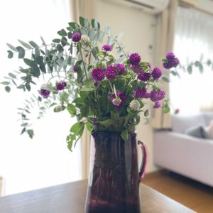 朝市で買った ユーカリと千日紅 明日リースにする予定