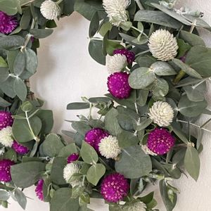 先日作ったリース センニチコウを入れたらキュートな出来上がりに💕