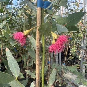 ユーカリロイコキシロン'ロゼア' 赤い花のユーカリです。 種まいて2年目の苗ですが、可愛らしい花が咲きました。