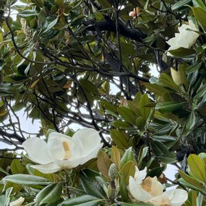 暑いがみらい公園をウォーキングしていると、大きなタイサンボクの木に、大きな白い花が咲いていた。😊👍🎶📸 遠くからでもとても良く目立ちます。🤗