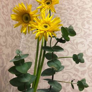庭に咲いていた謎の黄色の花を摘んで挿しました。