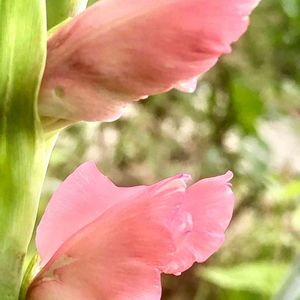今日の花… 🌸グラジオラス🌸 球根を掘り上げなかったので、年々、少なくなりました😅😅 今年3年目は、この2本だけ❣️ 花弁が華麗で、とても好きです☺️