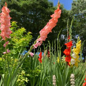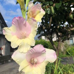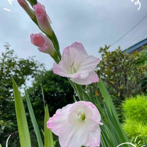 グラジオラスのピンクが例年より天候(暑さ)のせいか少し薄い気がするけど咲きました これは三女が学生の頃オランダから球根を買って来てくれたものです💕