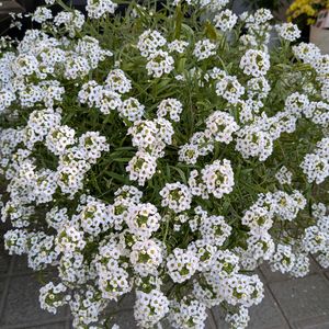 スーパーアリッサムさんは葉っぱが班入りで明るくて毎年お迎えします これは園芸店の見本です、我が家のスーパーアリッサムさんも、モリモリにしたいです🫶🏻