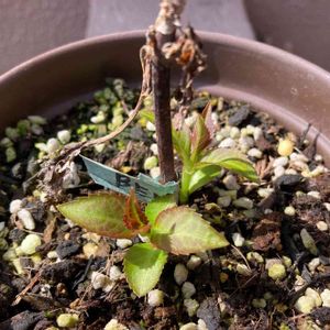 昨年、GSの花友さんからいただいた紫陽花【BENI】の挿し穂に新芽が! 新芽もエキゾチックな魅力ですね。