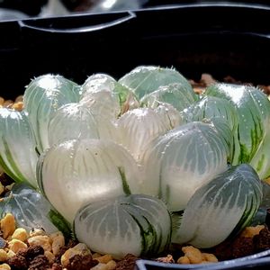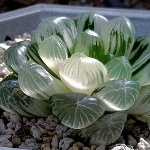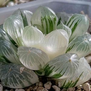 ●ススキノキ科 ツルボラン亜科 ●ハオルチア属 ●青鏡オブツーサ錦😻😻 おはようございます‼️🥱🥱🥱🥱 今朝は昨日に引き続き天気は🌧️悪く、☔雨です…😅 ❄️🌨️雪は今のところ降って来ません…🤔 ビニールハウスの中のハオ達ちが少し心配ですが、今までも年中ベランダ外管理でやってきて、寒さで氷ついて枯れたなんて一度もなかったので大丈夫かと思いますが…🤔😅 さてと、今日はゆっくりのんびりと過ごしたいと思います。😶😑