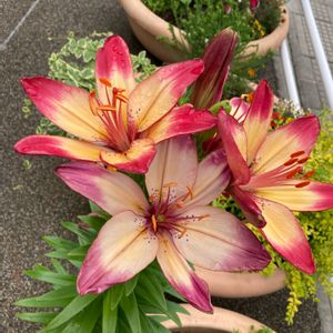 ある駅前の花壇に咲いていたユリ🪷 暖色系で珍しい色合いでした♪♪ 🏷️ 毎月6日は私のイチオシ✌️フラワーの日、よろしくお願いします♪( ´▽`)♡
