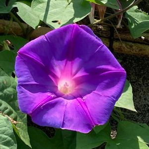 今日のお花、アサガオ💜🌿 鮮やかな紫色の花びらの真ん中には、輝く✨ライト🔦が潜んでいるようですね〜 少し濃い目ですが、🏷️癒しの薄紫、をよろしくお願いします^ - ^♪