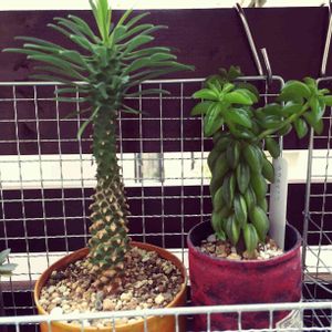 ペペロミアは全部が多肉植物なわけではない。 肉厚なものを多肉分類してるみたいだけど、曖昧よね。 なんとなく、多肉扱いされているペペロミアは肉厚なうえに葉が内側に巻いてるようなヤツが多い気がする。 画像は現在外の半日日陰に置いている多肉扱いのペペロミア。 上:グラベオレンス 去年の夏は絶好調だったけど、室内だったので徒長し、秋にいきなり腐って召された。 このコは2代目で北海道からやってきた。 外に置いたら徒長しないし、どっしりした雰囲気になってる。 赤と緑の色合いが好き♡ 下:どちらもダイソー出身。 左→ハッピービーンかフェレイラエ 冬にハッピービーンを迎えた事があったんだけど、即効で散った(T▽T) ダイソーで売ってるのはハッピービーンより葉が若干長い気がするし、フェレイラエもそっくりなので判断できない。 追記:フェレイラエの流通名がハッピービーンだそうです! 右→ニパドラかカクタスビレ 去年の夏に居たのもダイソー出身だったけど、あれはニパドラだったと思う。冬に散ってしまったけど。 で、このコは前のより若干葉が長い気がする。 カクタスビレもそっくりだから判断できない。 若干…これが問題だ( ̄∀ ̄;) ペペロミアに詳しい方いらしたら、教えて❢