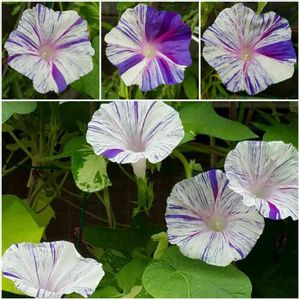 今朝の朝顔・シマシマ。 本名は、長ったらしいので略して『シマシマ』。 (ФωФ)長い名前は、かんべんして! おもしろいですねぇ~ 白と紫の比率が花ごとに違うから。 十人十色って言葉があるけれど十花十色って言葉があってもいいよね。