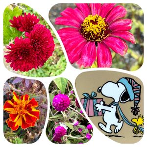 昨日、久しぶりに電車に乗りました 駅に行くまでの道沿いで見つけた夏の名残りの花達 元気に咲いていました 上左から ・スプレーマム ・百日草 下左から ・マリーゴールド ・千日紅 ・娘から貰った○○クロのプリペイドカード 使い切ってしまいましたがスヌちゃんが可愛いので捨てられません 🏷️真っ赤な火曜日 🏷️毎月2日はスヌーピーの日