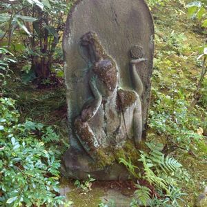 🏷石の日に参加します 根津美術館の庭園 ちょっと困ったような顔してる石像 11月下旬撮影