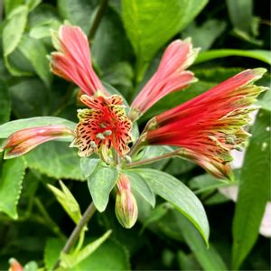 🪴草花たち その35 ユリズイセン(百合水仙) 赤い花色に黒の斑が入り、葉色は濃い緑。 色のコントラストがクッキリ、ハッキリ。 北半球は季節外れのクリスマスカラー🎄✨ 連想ゲーム〜♬ 原産地ブラジル→リオのカーニバル→情熱的→燃える赤→ユリズイセン ⛅️ *・゜゚・*:.。..。.:*・''🎡・*:.。. 🎢.。.:*・゜゚・* ⌘ Mein Lernmemo ⌘ 🔸科名・属名 ユリズイセン科 アルストロメリア属 🔸学名 Alstroemeria pulchella 🔸英名 New Zealand Christmas bell Parrotlily Parrot flower Red parrot beak Peruvian lily Lily of the Incas Inca lily 🔸別名 鸚鵡六出花(中国名) 🔸原産地 ブラジル北部 🔸分布 中南米 🔸花期 5月~7月 🔸特徴 多年草、球根植物。 大正時代末期(1920)渡来した帰化植物。 観賞用に世界で広く栽培され、ニュージーランド ではNew Zealand Christmas bellとして親しまれ ている。南アメリカなどで野生化しており、日本 でも野生化したものが各地で見られる。 アルストロメリアの仲間で原種系の花を咲かせる。 高さ1m。 葉は互生する単葉で、長楕円形~へら形。 茎先に散形状の花序を出し、花序には苞がある。 花は半開し筒状となり、左右相称で、内外3枚 ずつ計6枚の花被片がある。 花色は赤色で、花被片の先は黄緑色となり、 内側に黒色の条斑がある。 雄しべは6本。 果実は蒴果。 毒性有り。