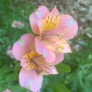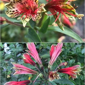 振り返り見た写真から① 毎年 咲いてるのにどんなお花?だったと。😅伸びていた植物(奥)手前も同じもの🌿 茎に葉が巻かれたように最初伸びてました。すこしづつ開き素敵な姿🌿 咲くまで思いだせませんでした 開花 5~7月 「アルストロメリア」 2021 4/23📱撮影