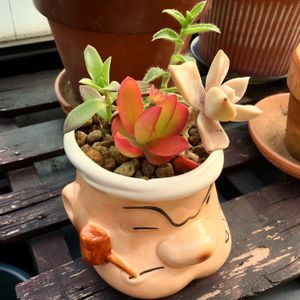 多肉寄植え「ポパイ鉢」 観察日記❶-2 埴輪鉢からの移植してポパイ鉢に 寄せ植えにしてみた。 実はポパイのマグカップ♪