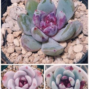 タパルパ×ラウイ まだブチブチ消えずに残ってます😆🩷🩵💚 大きく育ってくれるといいな😌💕 カンテ×ブルーミニマ ブチブチなくなっちゃった😭 そしてお水と肥料を吸って大きく開きました🤣 この子にはたくさんの子吹きを期待しています😆