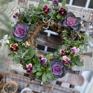 あんみつリース作りました 葉牡丹の主張が強すぎて入れ替え検討中ෆ.*・゚ あの方リース なんか愛嬌あるリースです 葉牡丹は自力で増やしたもの使用ෆ.*・゚ちまちまリーフ沢山増やしています お庭 地植えの花はなくみんな鉢植えですෆ.*・゚ リビングから癒されてます 庭のリーフで小さなブーケෆ.*・゚ カレックスさん大きくなりすぎてカットしました 室外機に絡まったら大変💦 こうみえて←どうもみえてない 意外と心配症です 地震怖いですね 備えを再点検しないと 寒い時期に 皆さんお気をつけて