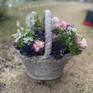 ちょっと遠くの園芸店で素敵なビオラさんに出会えました♡⃛ 箕輪華(みのわすみれ)さん 渋っぶめですが小輪で可憐な子です こちら初雪なんで可哀想で階段にとりあえず居てもらいます - ̗̀ ☺︎ ̖́-たらお外ね〜(*Ü*)ﻌﻌﻌ♥