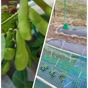 4月18日に定植したものに、ネットをかけてもらいました。 美味しいものには、必ずサル🐒対策が必要です。 枝豆