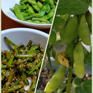 わが家の家庭菜園🥬 プランターで育てた枝豆🍻 枝豆は地植えもプランターも、実付きが少なかったです💦💦 でも、お味は抜群👌 写真左の下は、さつまいもの茎をきんぴらにしました😃 こちらでさつまいもの茎を食べるということを教えていただいて食べてみたいなーと思っていたら、大好きなYouTubeひろちゃん農園でさつまいもの茎の料理の仕方を投稿されていたのでチャレンジしてみました。 皮を剥くのが難しかったです💦 初めてでしたが、美味しくいただきました😋🍴💕 今度はひろちゃんが作っていた鶏肉とさつまいもの茎の煮物にもチャレンジしてみたいです😆⤴️💓