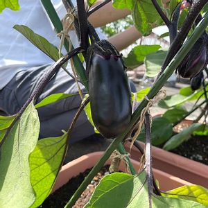 ㊗️初収穫〜🎉🎉🎉 ☔続き&仕事&子どもの学校関係でなかなか畑に行けず、昨日やっと久しぶりに畑へ(下段が畑組) なんと、ラクロ🍆立派に実ってました‼️ 赤ちゃんの実→少しずつ大きく→収穫‼️のレポしたかったのに、ごめんなさい🙇いきなり収穫でした。 他の種類のなす🍆の種まきに遅れること1ヶ月、定植の頃には成長がすっかり追いつき、一番乗りで収穫です。スプリンターが過ぎる…(他の先輩🍆は、まだ赤ちゃんがやっと…って感じです) ほぼ放任だったのに、嬉しい〜🥰 上段pic📸は、庭のプランター組。 こちらも、ぐんぐん成長中✨✨✨ みどりのまとめも更新したので、よろしかったらご覧下さい🙇