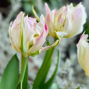 チューリップ🌷ホワイトバレー✨ 白花の外側にグリーンの筋が入っています。 爽やかな色合いで、とても綺麗💓