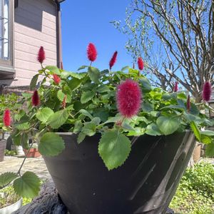 キャッツテールが咲いてます❤️ 緑も青々して… 秋空の青に映えます。 長旅後、切り戻したらこんなに生き生きしてきました🥰