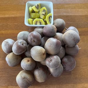 我が家で採れたキウイ🥝 小ぶりだけど美味しい😋 りんご🍎を一緒に入れとくと熟して甘くなる❤️