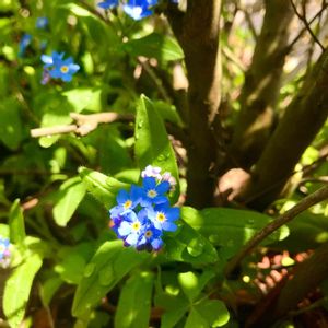 こぼれ種から沢山出ている勿忘草。 ❁✿✾ ✾✿❁︎ 暑い日差しの木漏れ日を浴びて 今年もたくさん咲きそうです☺️