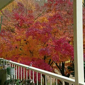 今朝は曇りで現在は小雨が降ってます。 台所から眺める、この景色が一番好きです😆 紅葉🍁もそろそろ終わりに近づいて来ましたね😁