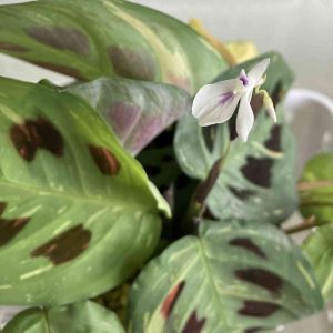 昨年購入の見切り品シリーズ🉐 マランタ、養生の結果開花しました👍✨ なんなら株分けして水栽培もしております🌱 胡蝶蘭も何度か葉と根を落としたものの最近は安定して、無事に開花までこぎつけました🌸