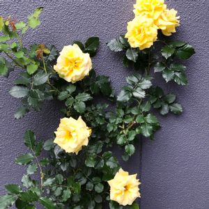 一番花が 一斉に開花〜✨ 初心者にも作れる薔薇 (私向き) 病気に強く 花付きもいい 日向からポーチに移動 🌹ゴールドバーニー