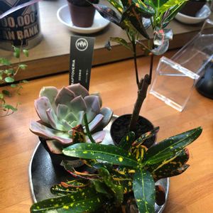 ユニークなミニ鉢植えお迎えしました♡♡ クロトン&コーディライン¨̮⋆♡⋆¨̮葉っぱが綺麗な植物ܾ ܾ 𖥧𓇣𖦥𖥧𖥣さんです.。o○ 小さな南国の雰囲気 を🤗感じています🍀